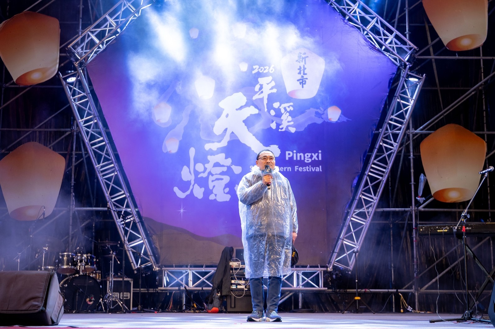 新北市市長侯友宜為新北市平溪天燈節壓軸場致詞,祝福所有市民都能心想事成,新北更平安
