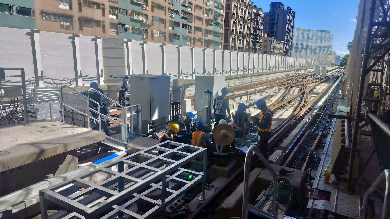 機廠主變電站、主維修廠、行控中心及駐車廠結構均已完成,正持續進行裝修、水環及機電設備安裝測試作業。