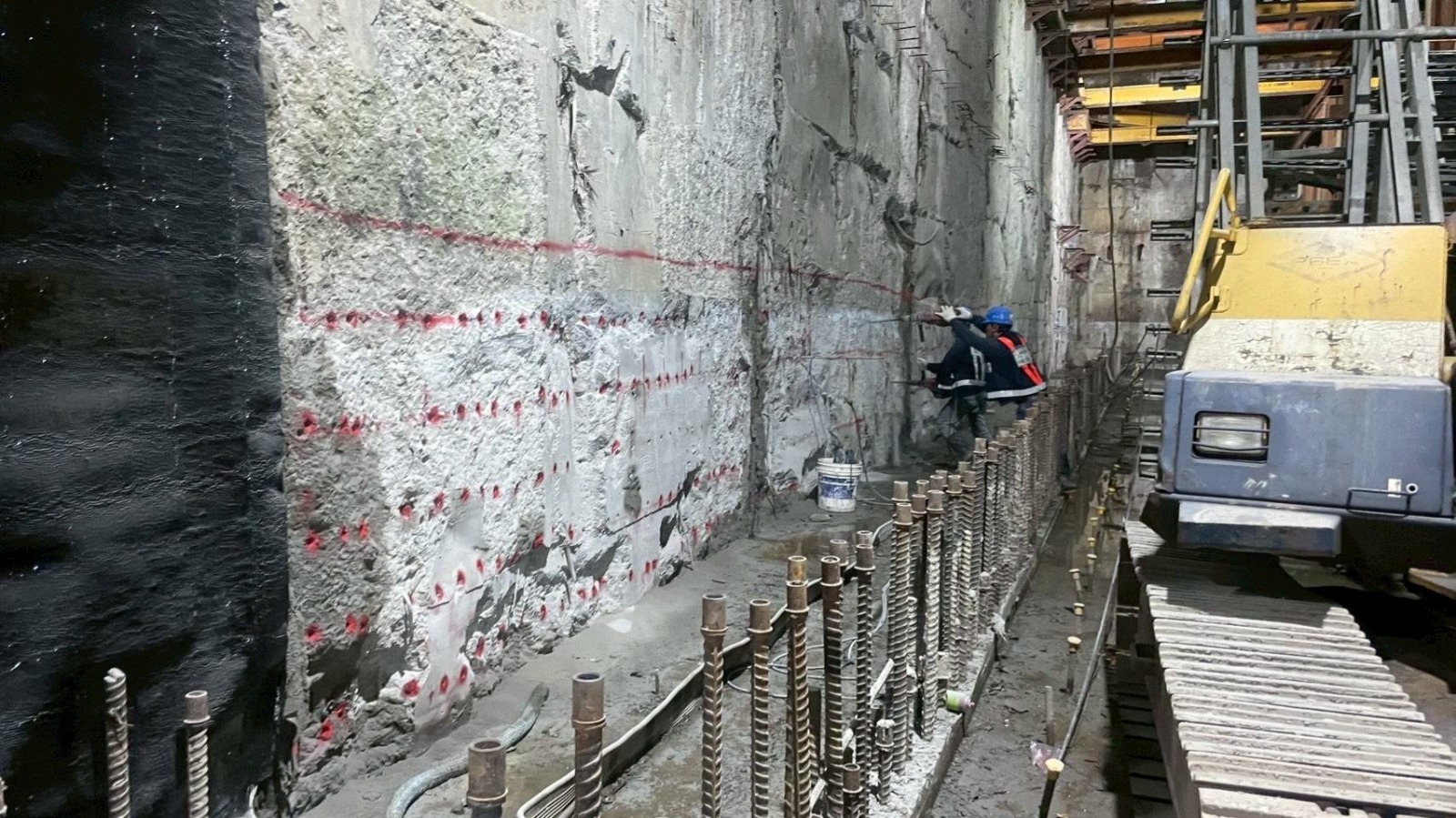 CQ850:站體Y通風井B2層側牆植筋鑽孔作業