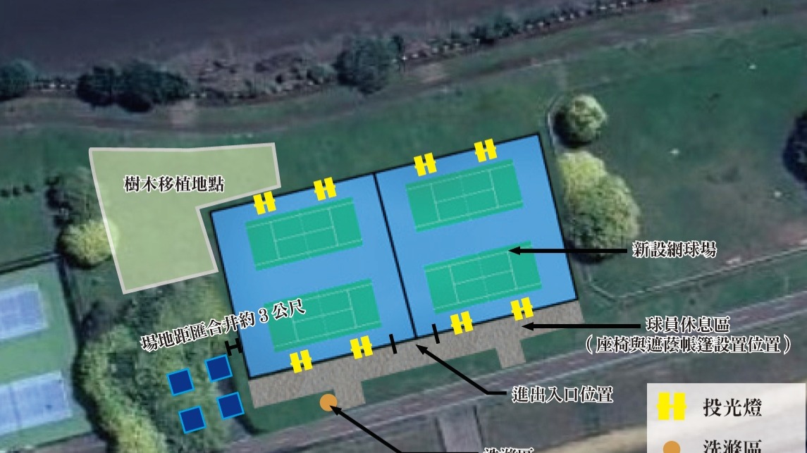 新增網球場位於三重龍門網球場及三重寵物公園周邊,經長期觀察盤點,部分籃球場因使用率較低,設施老化情形,為有效活化既有河濱空間並因應近年網球運動人口持續成長,遂規劃將球場重新整建,增設4座標準網球場,提升整體場域使用效益。