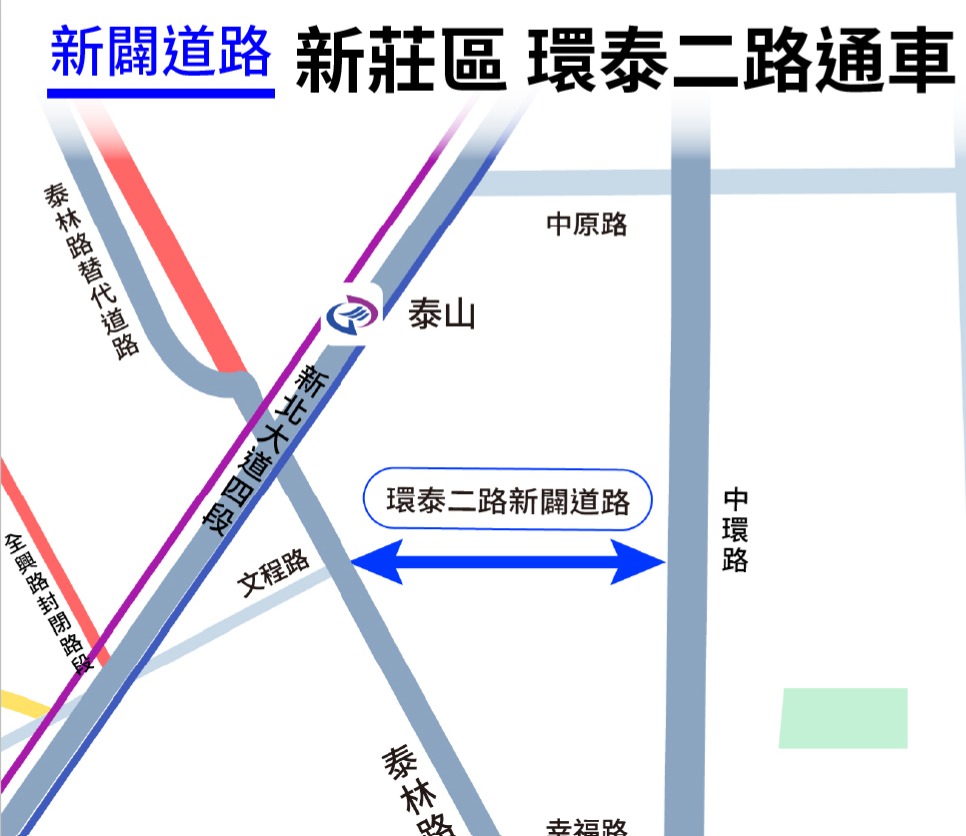 新北市政府持續推動塭仔圳地區整體發展,於市地重劃區內積極辦理多項基礎建設,提升交通與生活環境品質,促進區域繁榮。為提供經常往返輔仁大學附近、新莊副都心及機捷泰山站周邊的用路民眾便利,近期於114年11月27日上午再開放2條新設道路正式通車,分別為鄰近輔大醫院的「懋德路」及靠近機捷泰山站的「環泰二路」。