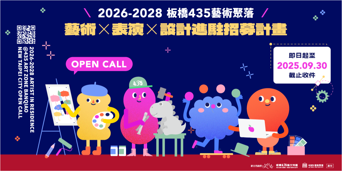 板橋435藝文特區自2013年,辦理藝術進駐招募計畫,致力提供藝術創作的朋友一個城市中綠洲般的創作天地。今年9月435藝術聚落2026-2028年進駐招募計畫徵件,以藝術家工作室、表演藝術團隊及設計孵育工作室三種創作類別,釋出共51個排練及創作空間,進駐期程皆為2年,評鑑優良者可再續約1年,是國內唯一進駐期程可長達3年的藝術進駐單位,歡迎不同領域的創作者加入435藝術聚落。