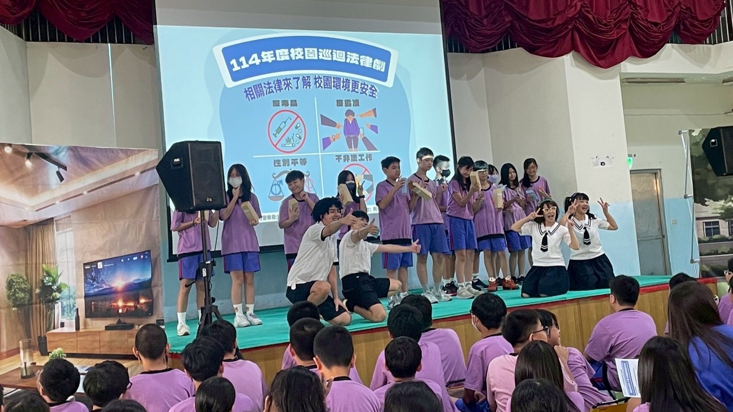 114年度由新北市政府警察局少年警察隊、新北市政府少年輔導委員會主辦,委由阿特文化創意有限公司演出的校園巡迴法律劇場,於3月份開始進入校園演出,此次巡迴會走入新北市內16所學校,並配合主辦單位一場公開公益演出,合計有17場次的表演活動,展演內容結合時事議題,透過輕鬆活潑的短劇形式及有獎徵答形式,傳遞有關毒品、聚眾鬥毆、校園霸凌等相關知識,期望能夠藉由政府機關、學校與民間組織攜手合作,強化親職教育、法治教育、休閒教育等犯罪預防工作。