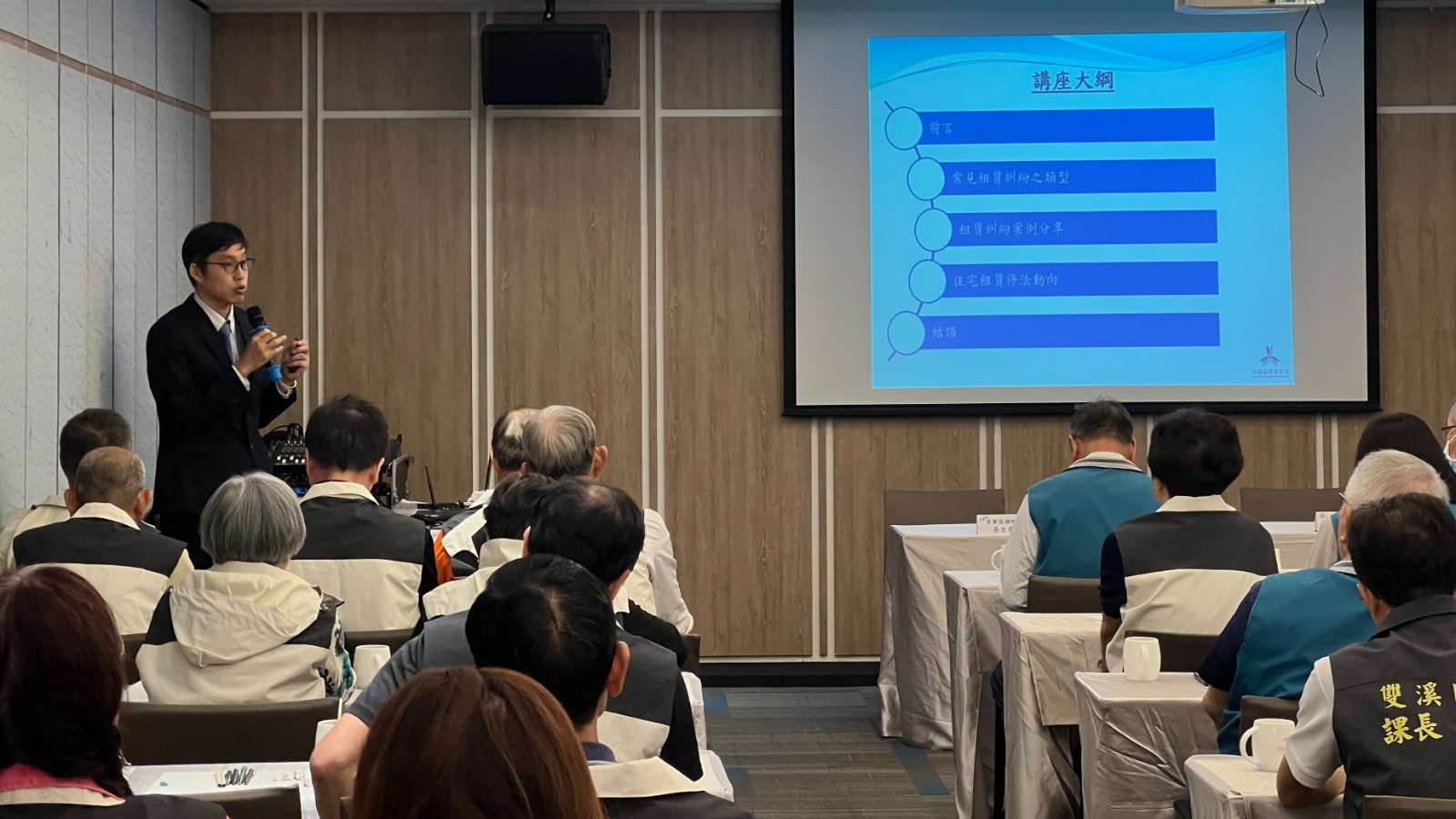 四、 本局 114年「調解實務分區研習」課程於114年10月23、28、31日及同年11月4、6日分別於本市貢寮、三重、淡水、新莊、土城等5區公所舉行,由財團法人車禍交通事故特別補償基金會薦派講座講授「強制險如何保障車禍受害人」,另由趙政揚律師講授「租賃糾紛與案例分享 」,藉由深入地方辦理實地研習,以促進調解品質之提升,本市各區調解委員會委員、調解業務承辦人及本府同仁等約420人參訓。