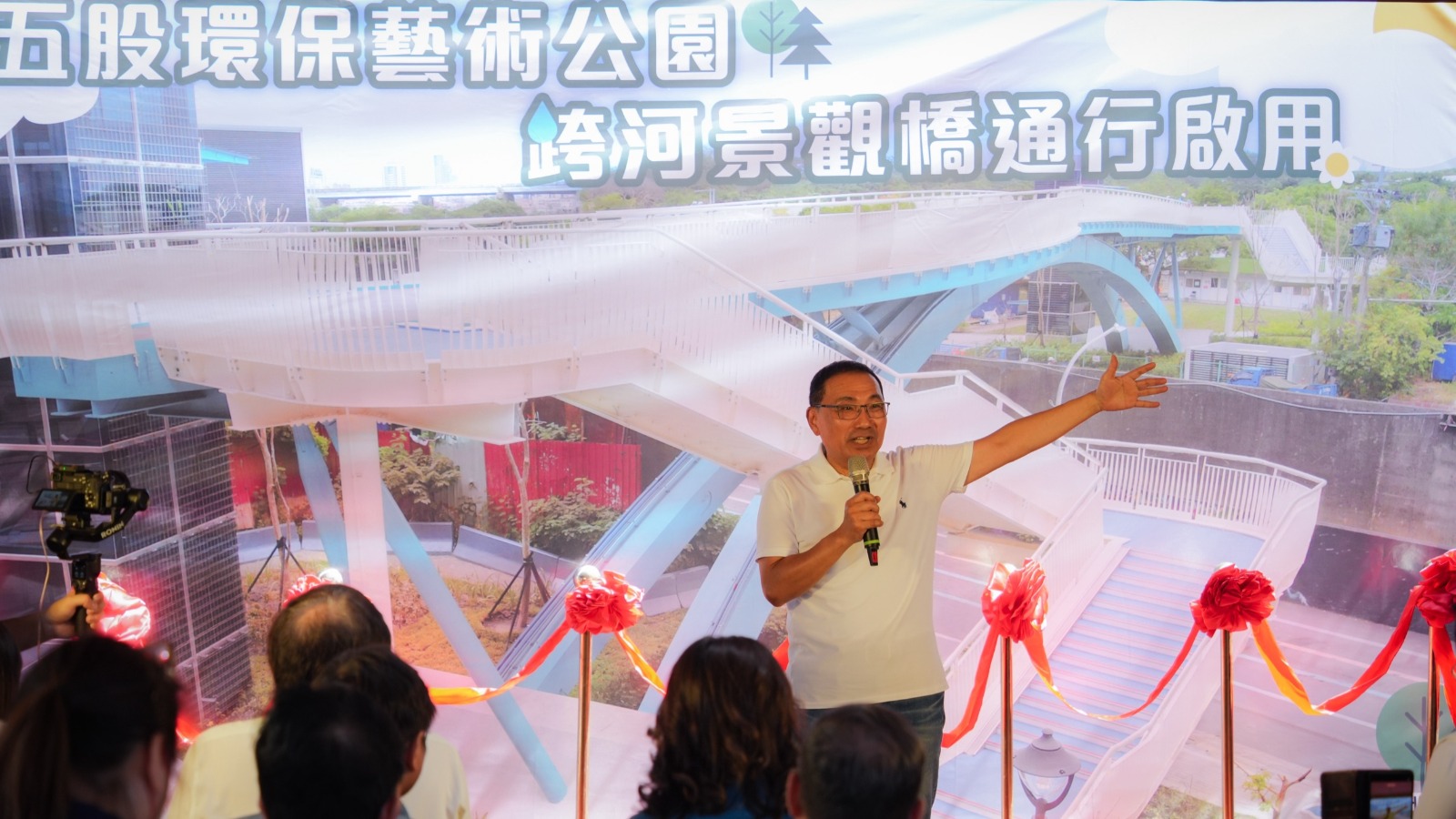 市長侯友宜強調,新北市府自2019年起推動五股垃圾山整治,將原本雜亂的環境翻轉為今日的「五股環保藝術公園」,而景觀橋正是這份轉變的延伸與展現,更是連結城市與自然的生活走廊,提供阿公阿嬤帶孫子散步、年輕人運動休閒的好去處。未來市府將持續努力,推動五股邁向更宜居、更樂活的新境界,讓所有新北市民共享這片美麗的水岸空間。