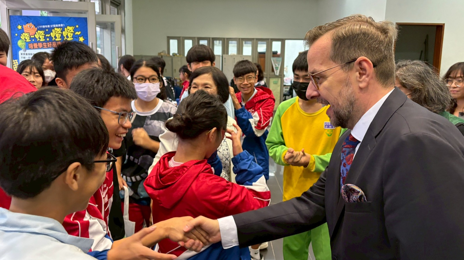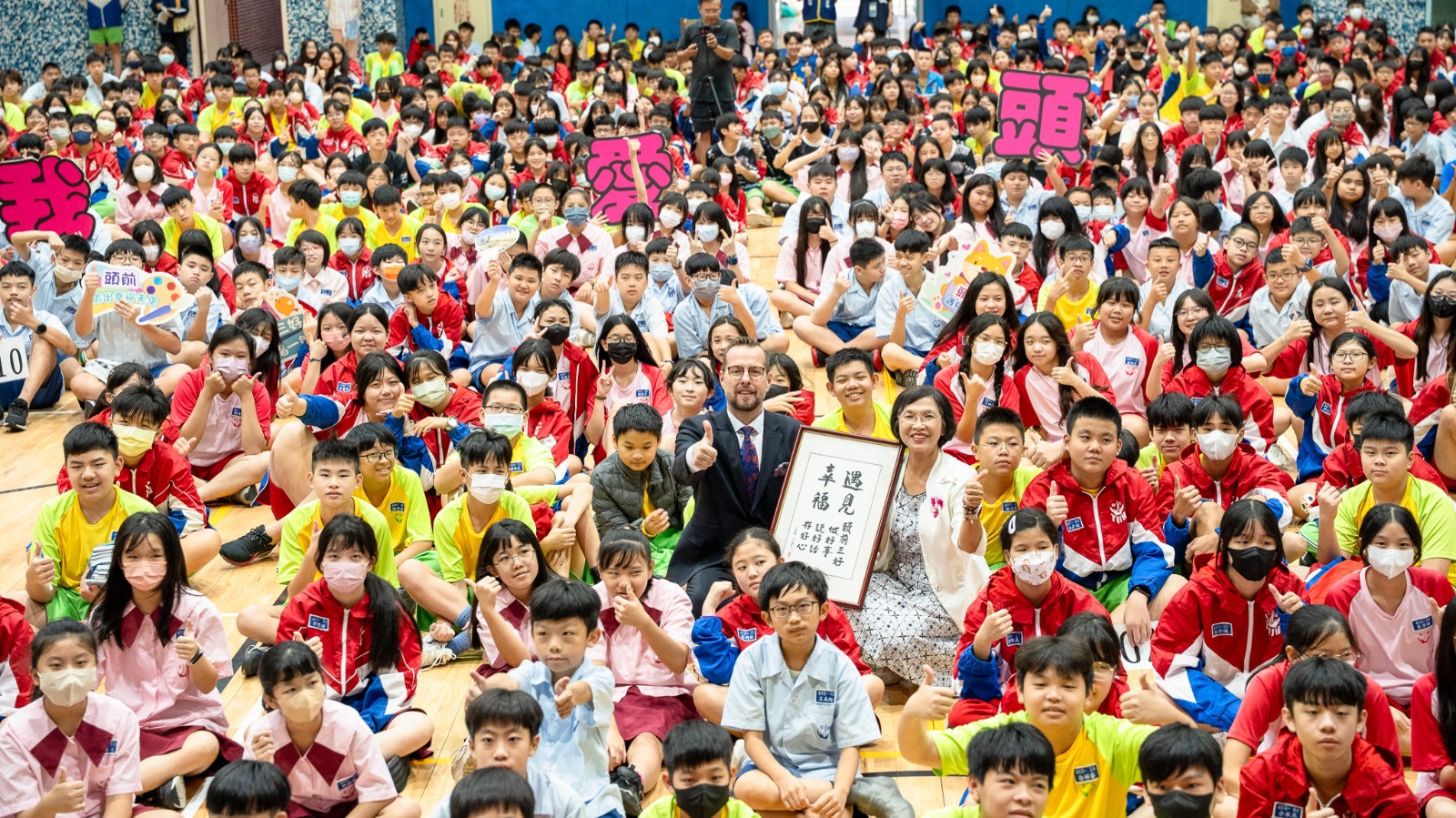 捷克代表史坦格至新北市立頭前國中演講,與近900名師生合影