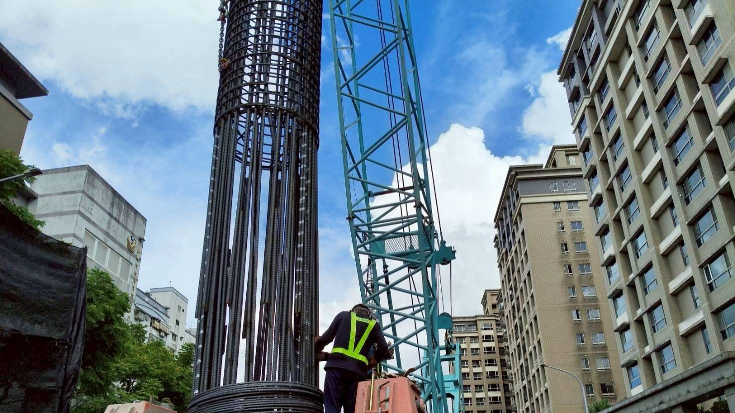 鋼筋籠第三搭吊放搭接,置放特密管