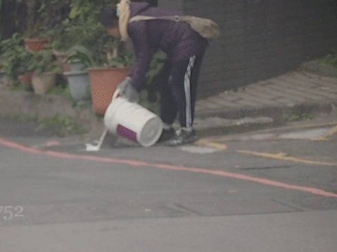 經調閱監視器發現行為人將白色漆料倒入水溝