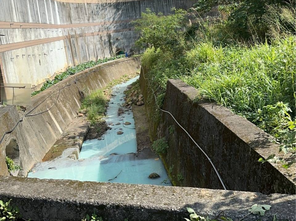 ◆潭底溝遭染成藍色 新北環保局火速揪出亂倒油漆業者