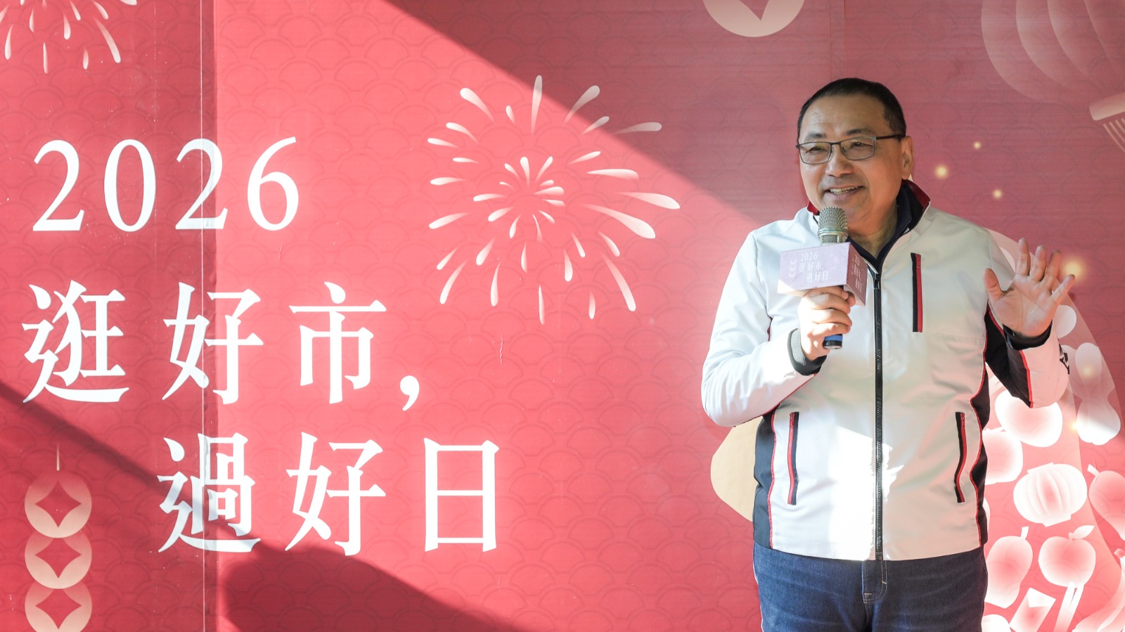 市長侯友宜至中和區和平街黃昏市場向市場攤商及市民朋友拜早年。